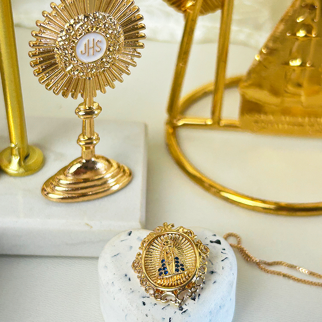 Diferente de qualquer outro colar, o nosso tem uma conexão real com o Santuário Nacional. Não está à venda em qualquer loja comum. É exclusivo, especial e preparado para devotos que buscam mais do que uma joia: buscam um símbolo de fé verdadeiro.