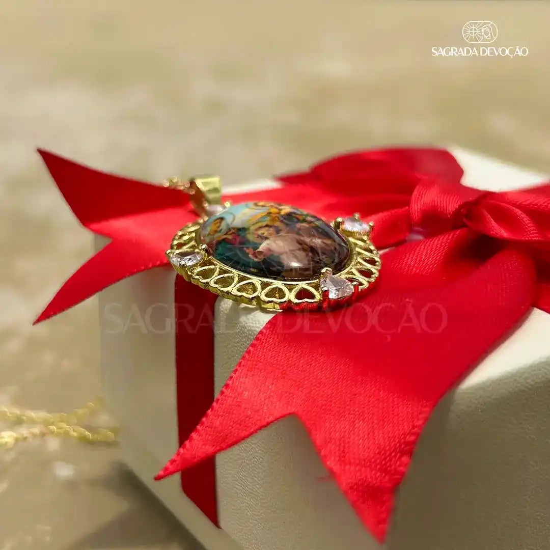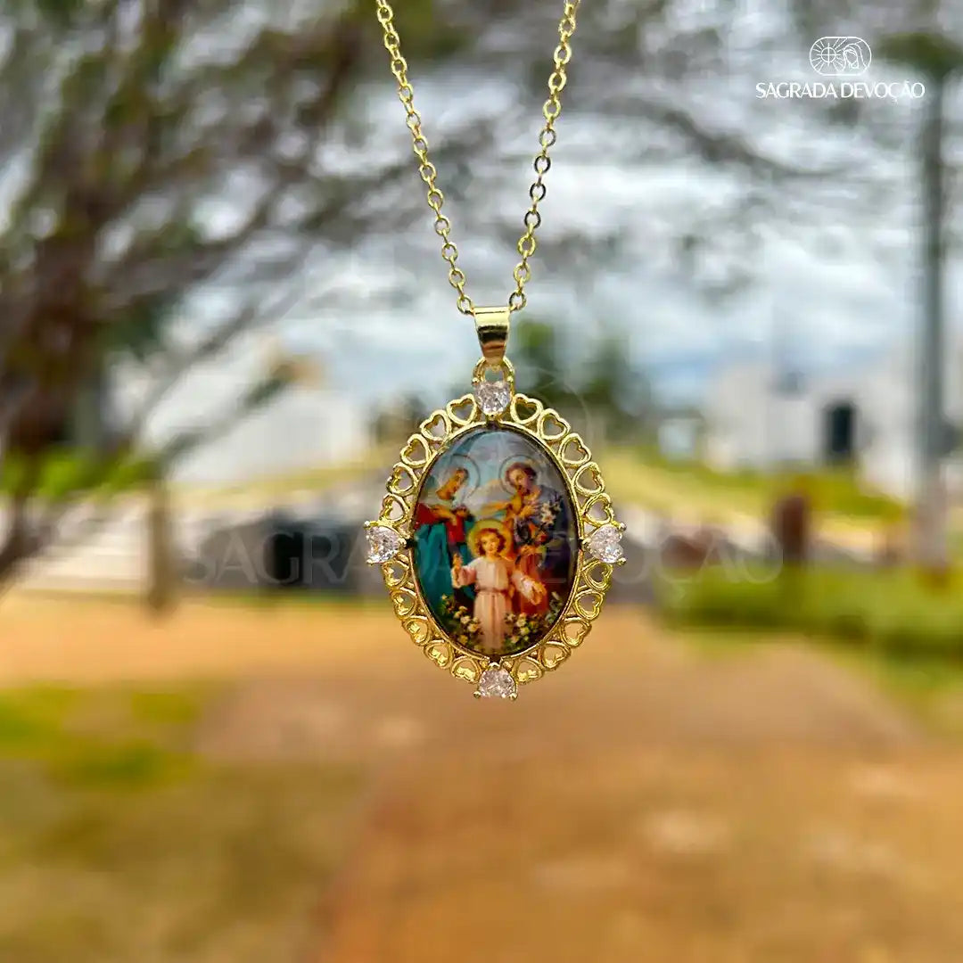 Carregue a união de Jesus, Maria e José ao seu lado, todos os dias. O colar da Sagrada Família traz bênçãos para sua casa e para aqueles que você ama.